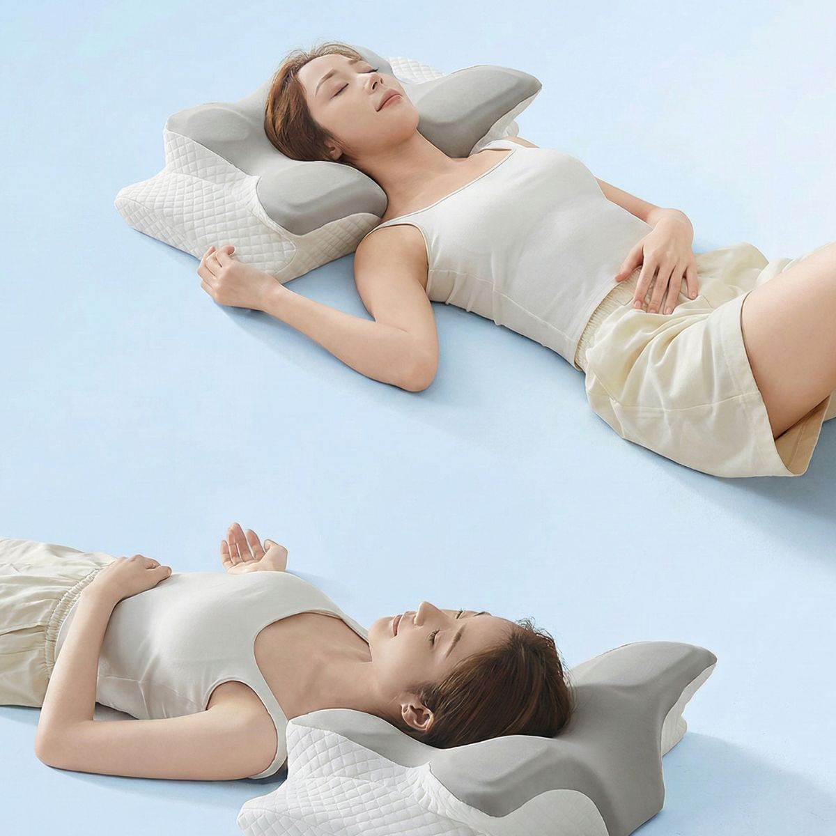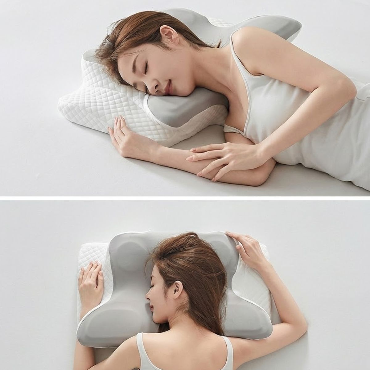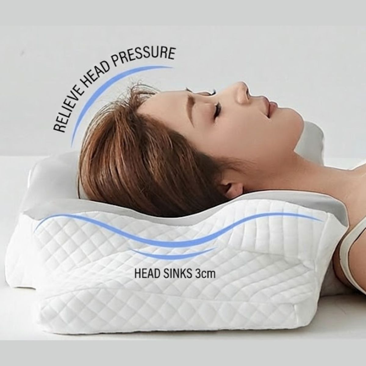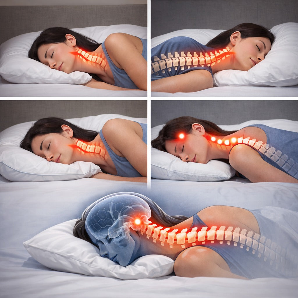 That constant misalignment strains your neck muscles, compresses nerves, and triggers pain — night after night.