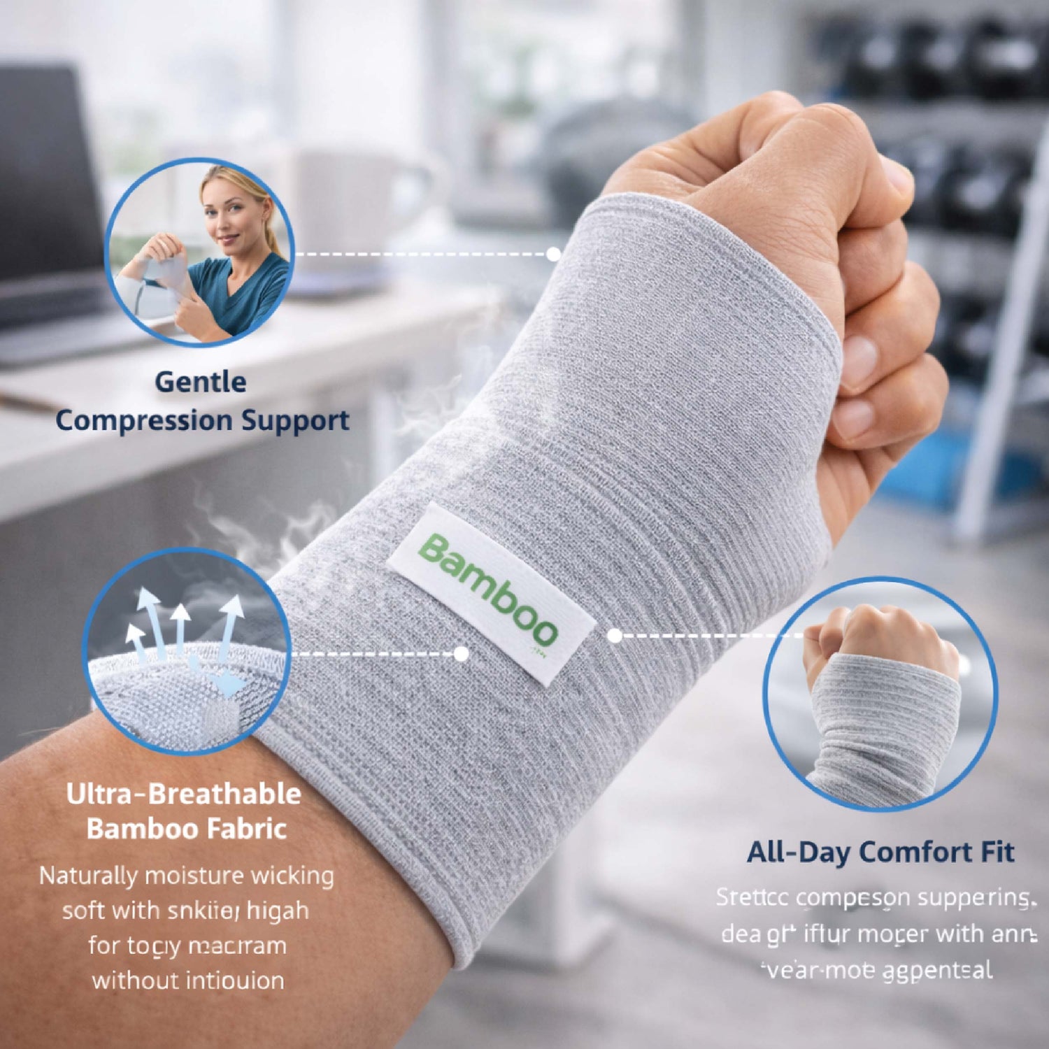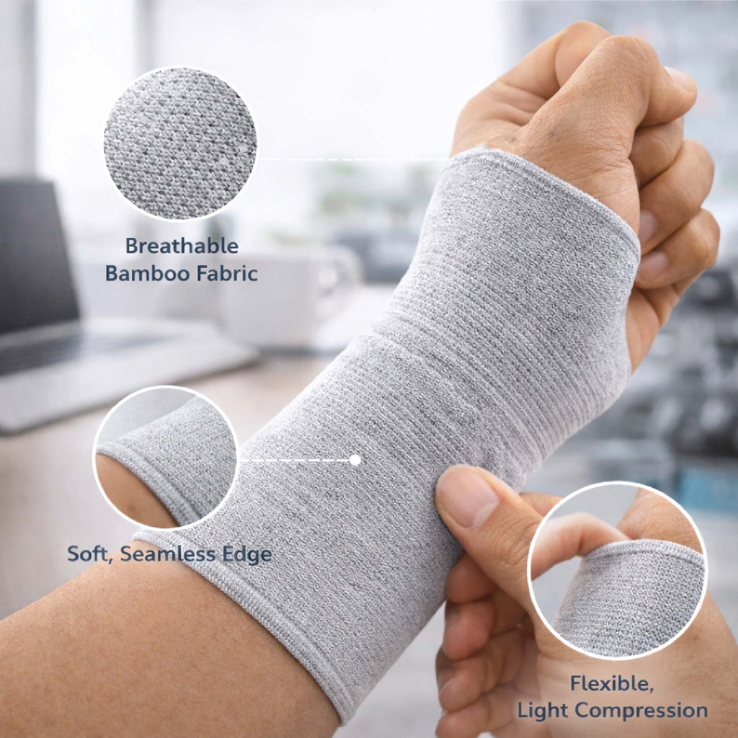 Most wrist supports are thick, sweaty, or restrictive. Portyl uses natural bamboo fabric blended with elastic fibers to deliver balanced compression that feels light, cool, and wearable all day.